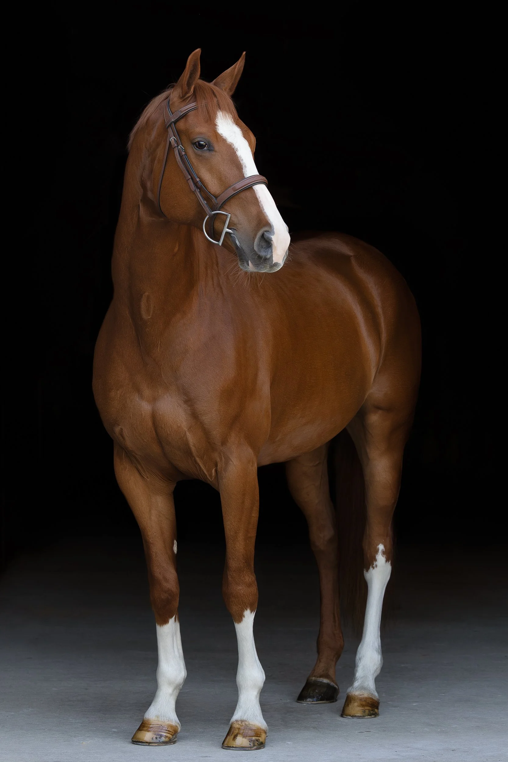 Photographing your horse wearing a bridle offers a stunning opportunity to showcase unique details like a special browband or bridle. The reins can be removed during post-processing to achieve a cleaner, more polished appearance. It’s important to note that with double bridles, the reins are not removed; instead, they are placed over the horse’s head. In some cases, with Western bridles, depending on the bit used, reins can also be removed during editing.