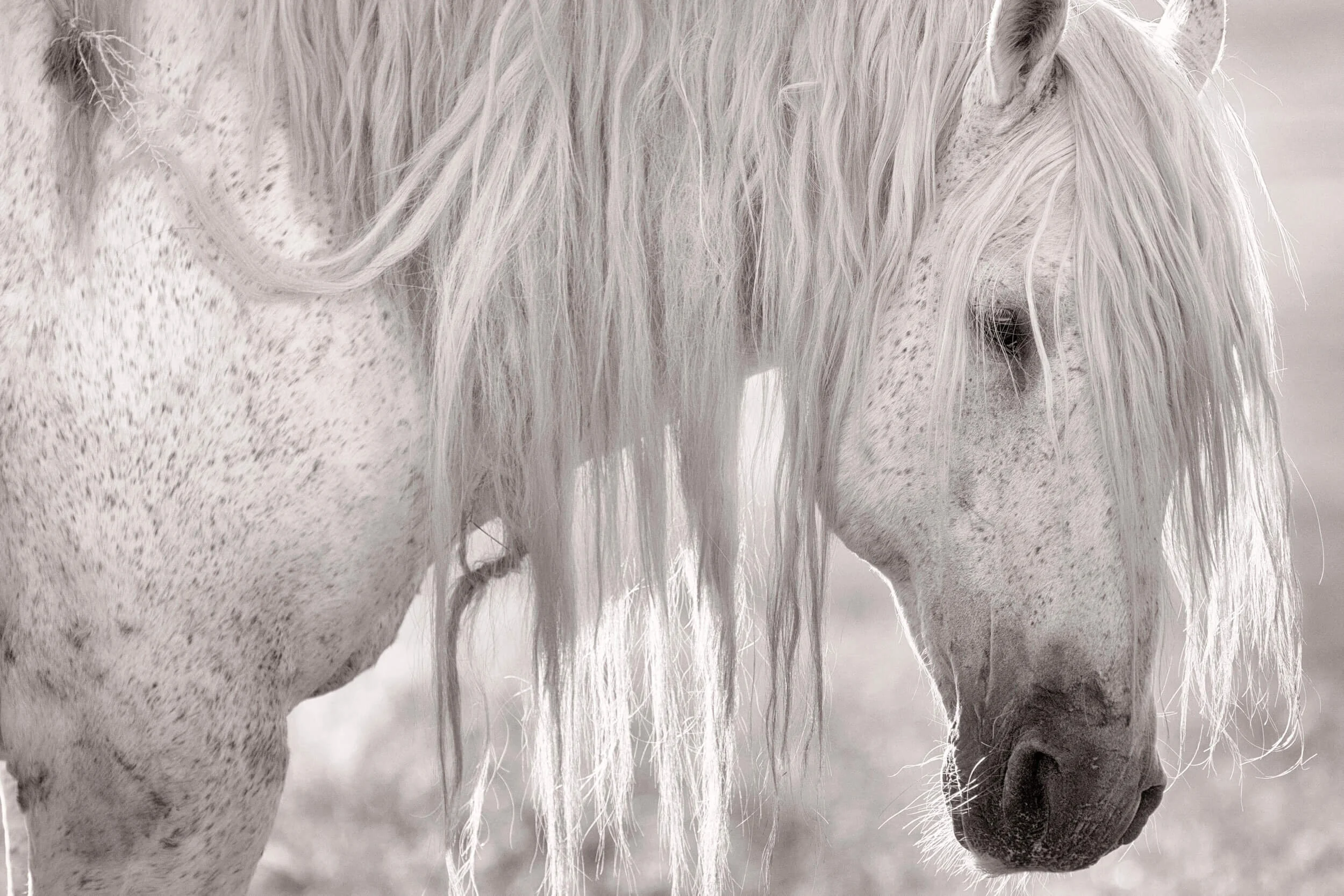 The profound impact of this stallions presence is felt throughout Onaqui, and he holds a special place in the hearts of many. That morning, I found Old Man resting quietly, standing in a rare moment of stillness. Time has marked him, yet his presence carries the story of a life lived wild on the Onaqui range. It was nothing more than part of his daily rhythm, but watching him in that stillness, with the light settling softly across his face, became something unforgettable. This photograph holds that quiet simplicity, the kind of fleeting scene that reminds us why the everyday often feels the most profound.