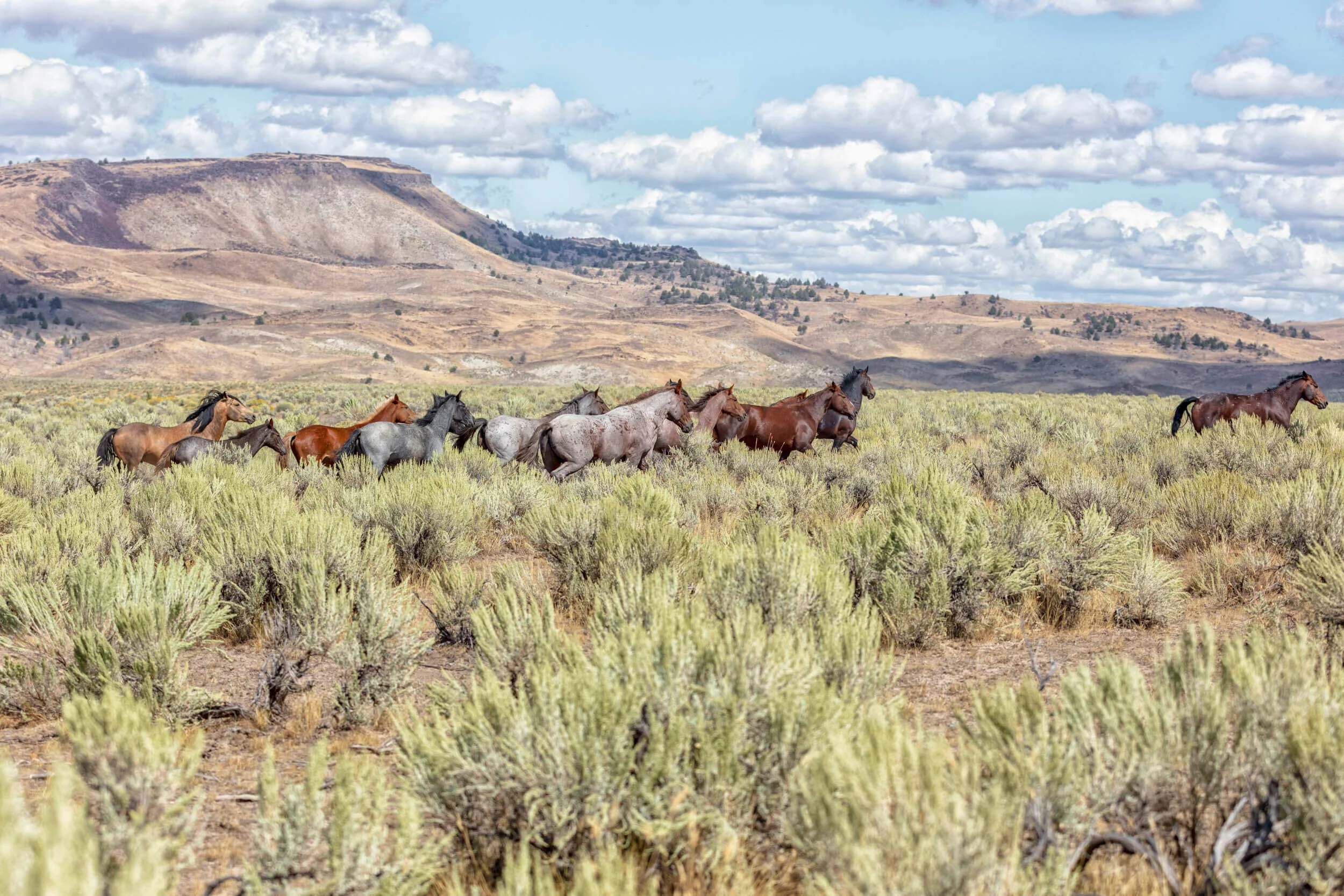 In the sagebrush, two stallions meet in a playful challenge, a fleeting burst of movement in the Cold Springs HMA. Spring brings green grass and wildflowers, but the season is short; soon the land will return to the arid high desert of the region.