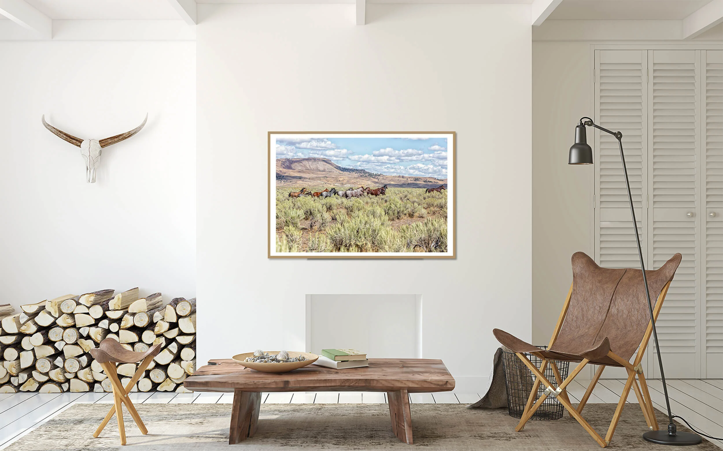 “I decided to invest in some professional mustang photography and this beauty arrived today (Sunrise Pink). I picked this photograph because I have been able to personally see this stallion on a few occasions in the wild, while visiting the Onaqui herd. Jessica Farren/4005 Images was fantastic to work with – quite a feat picking the right image that would be clear and crisp, considering the size of the image (40x60), and she was helpful and willing to pull different images while I was in the decision making process. I love it so much!”